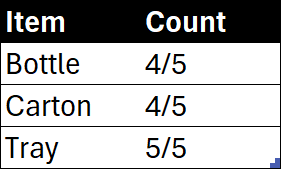 Obtaining the list (Bottle, Carton, and Tray) is a little more complex because it requires additional table manipulation and some care when creating temporary structures. The result we want to obtain, out of the list of top products, is the following: