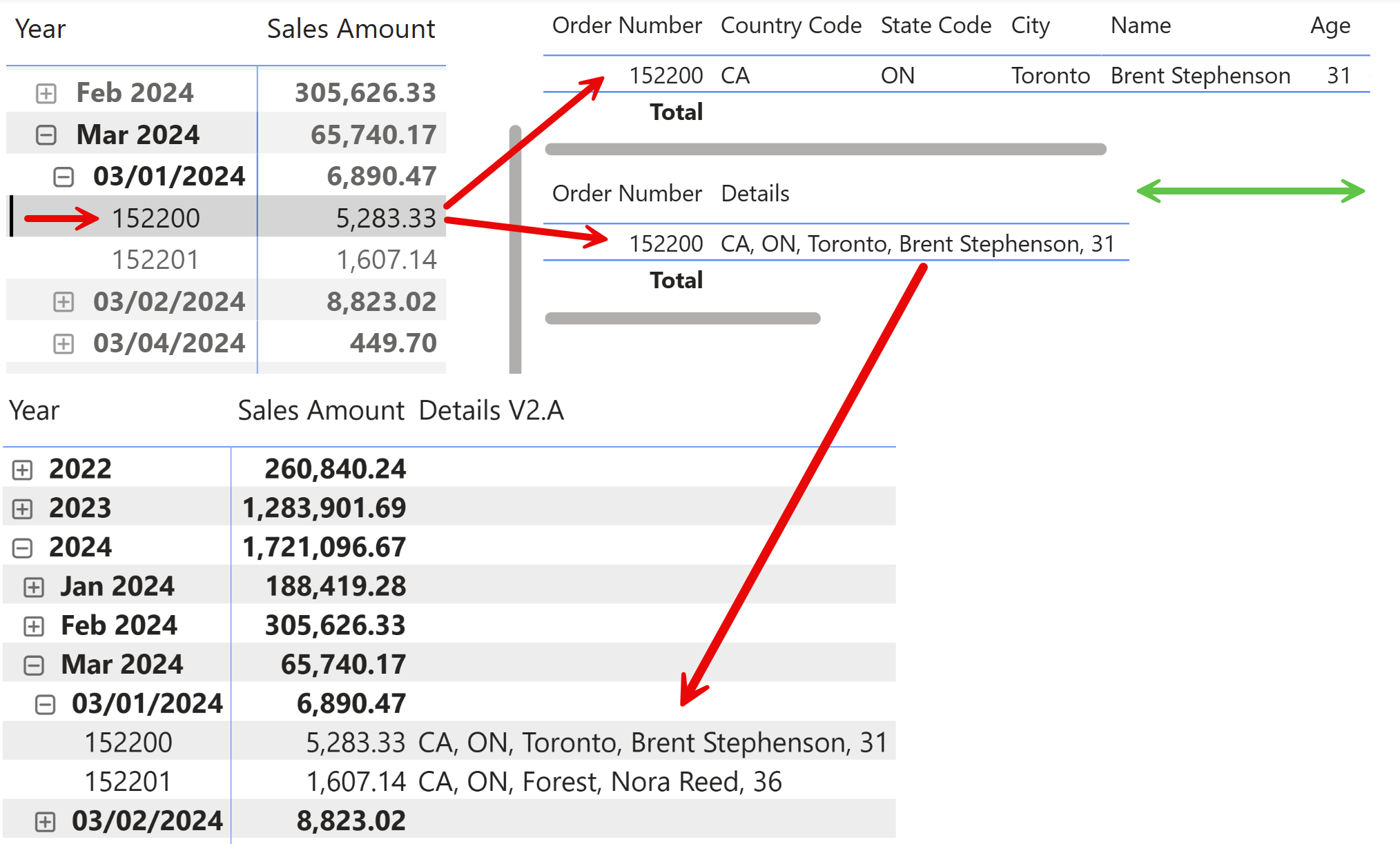 This article shows how to create a DAX measure that displays information from multiple columns in a business entity or transaction, into a single column of a matrix. Read more